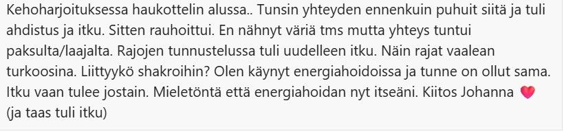 - "Parasta oli Chakrojen puhdistus, syvä kehoyhteys,myös universumiin🙏🩷🙏"